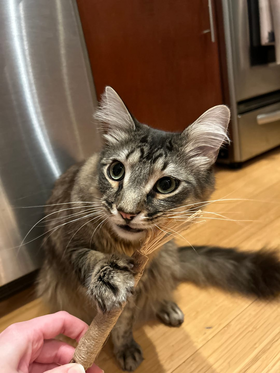 Patyczki z matatabi pomagają usuwać płytkę nazębną i kamień, a przy okazji redukują nieprzyjemny zapach z pyszczka, sprawiając, że oddech kota jest świeższy i przyjemniejszy.